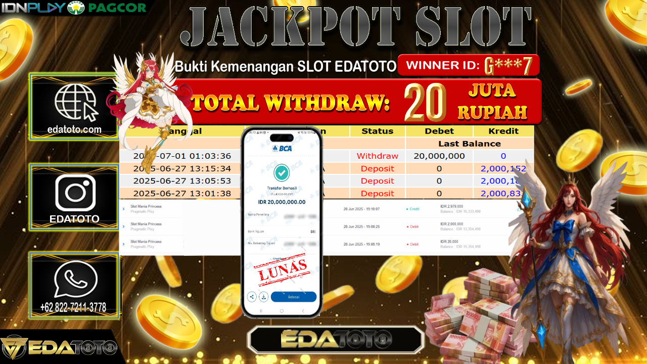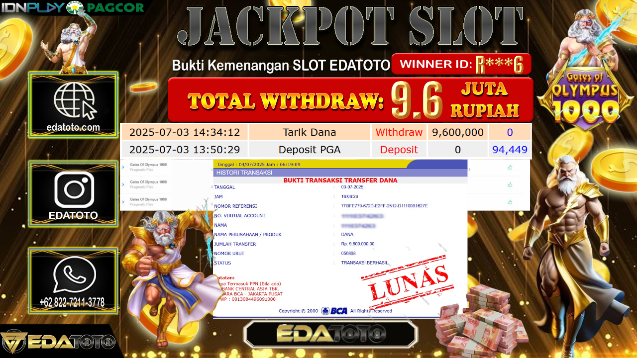 Selamat Kepada Pemilik user ID : ARZ*** Hari/Tanggal :SABTU / 6, Desember 2025 Jackpot : Rp. 110,000,000 JT Withdraw :110,000,000 . . .