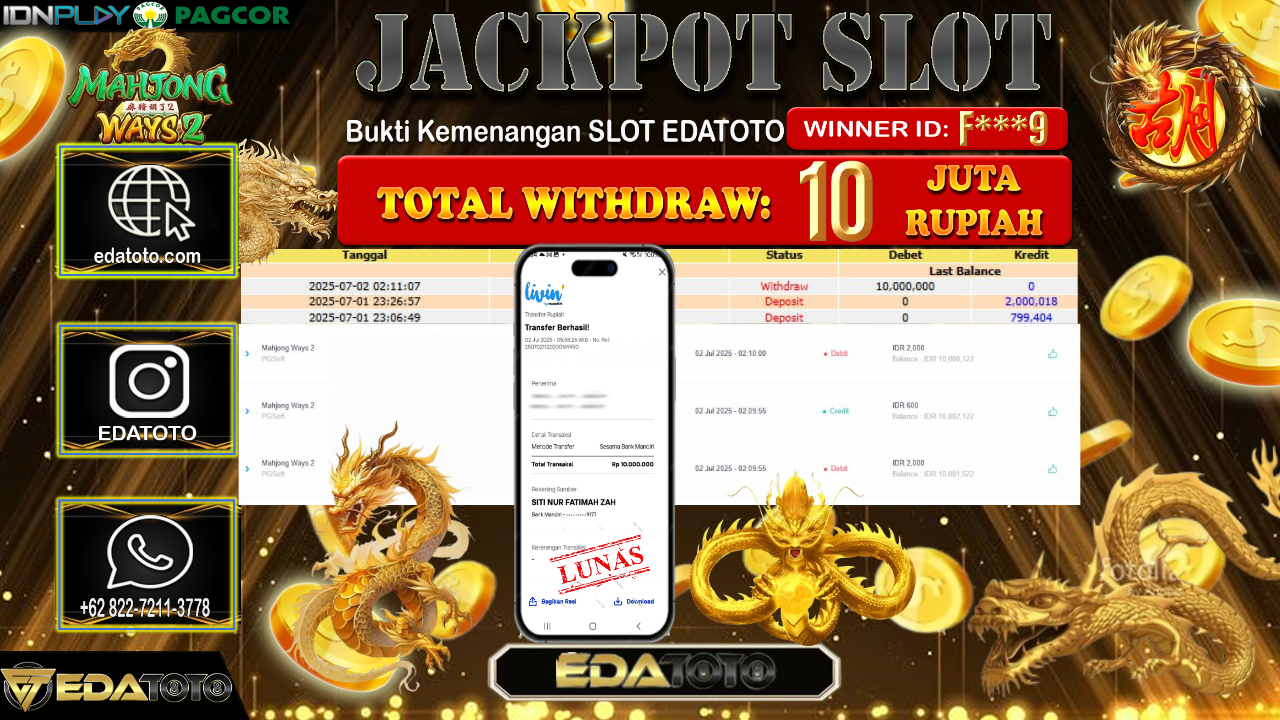 Selamat Kepada Pemilik user ID : RIZ*** Hari/Tanggal :RABU/ 10, Desember 2025 Jackpot : Rp. 40,025,000 JT Withdraw :40,000,000 JT . . .