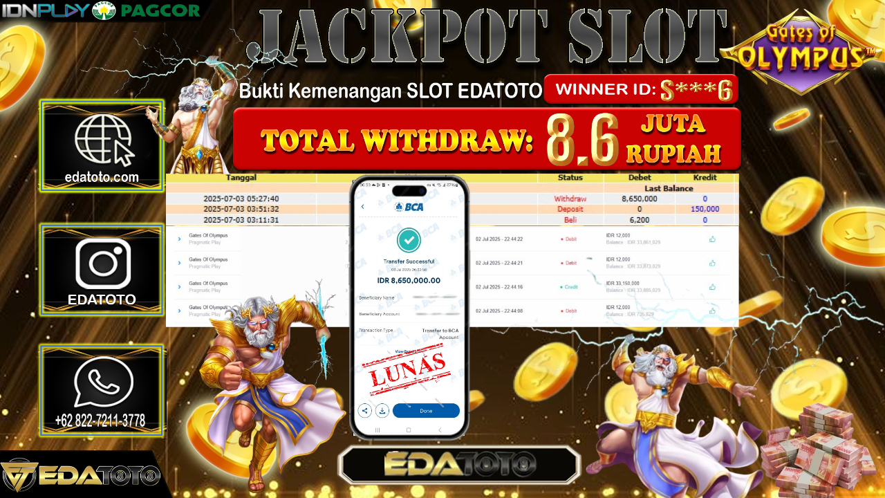 Selamat Kepada Pemilik user ID : RUL*** Hari/Tanggal :SENIN/ 8, Desember 2025 Jackpot : Rp. 80,000,000 JT Withdraw :80,000,000 JT . . .