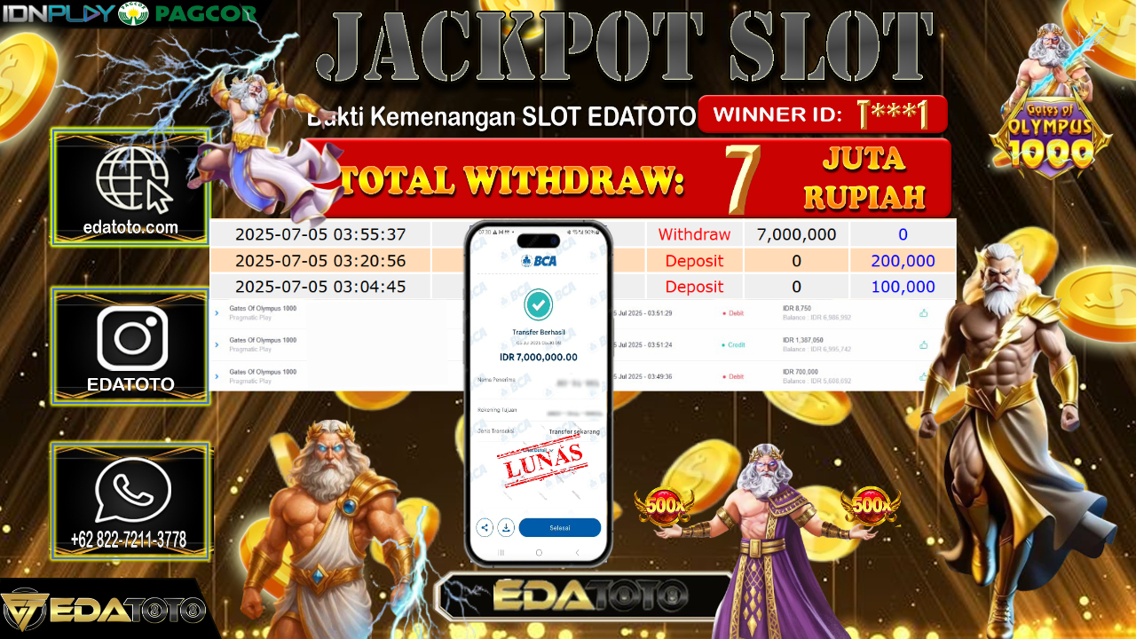 Selamat Kepada Pemilik user ID : DAY*** Hari/Tanggal :MINGGU/ 7, Desember 2025 Jackpot : Rp. 43,500,000 JT Withdraw :43,000,000 JT . . .